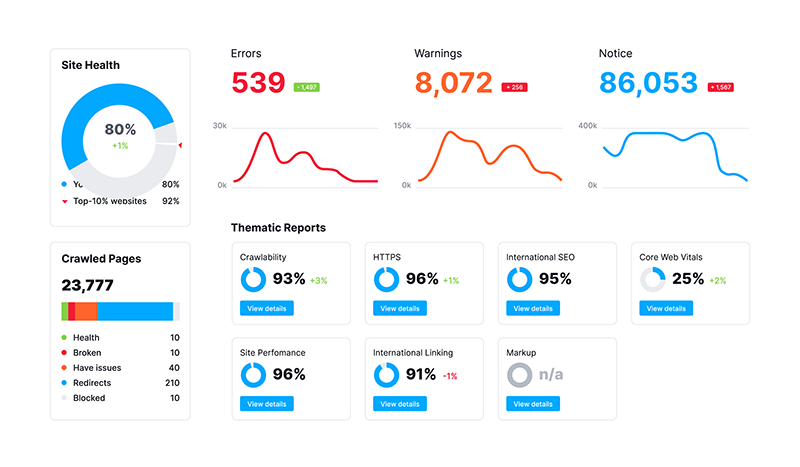 Conduct a Site Audit and, check for broken pages, links, and problems with basic HTML tags.